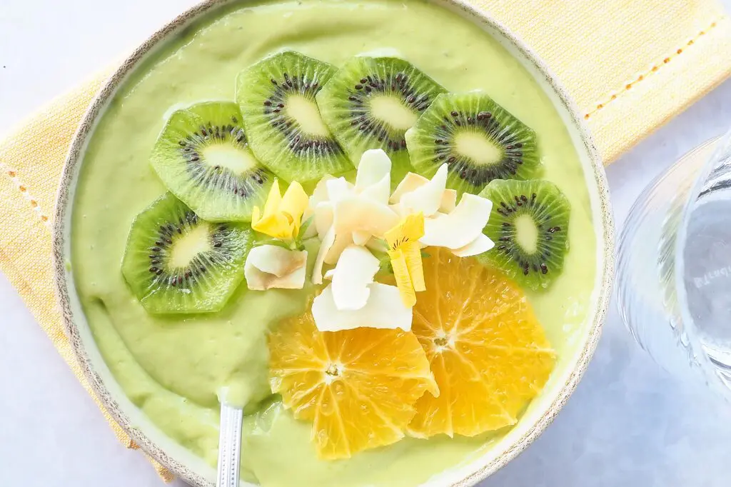 Topping: Appelsin, kiwi, appelsinskiver, kokosflager