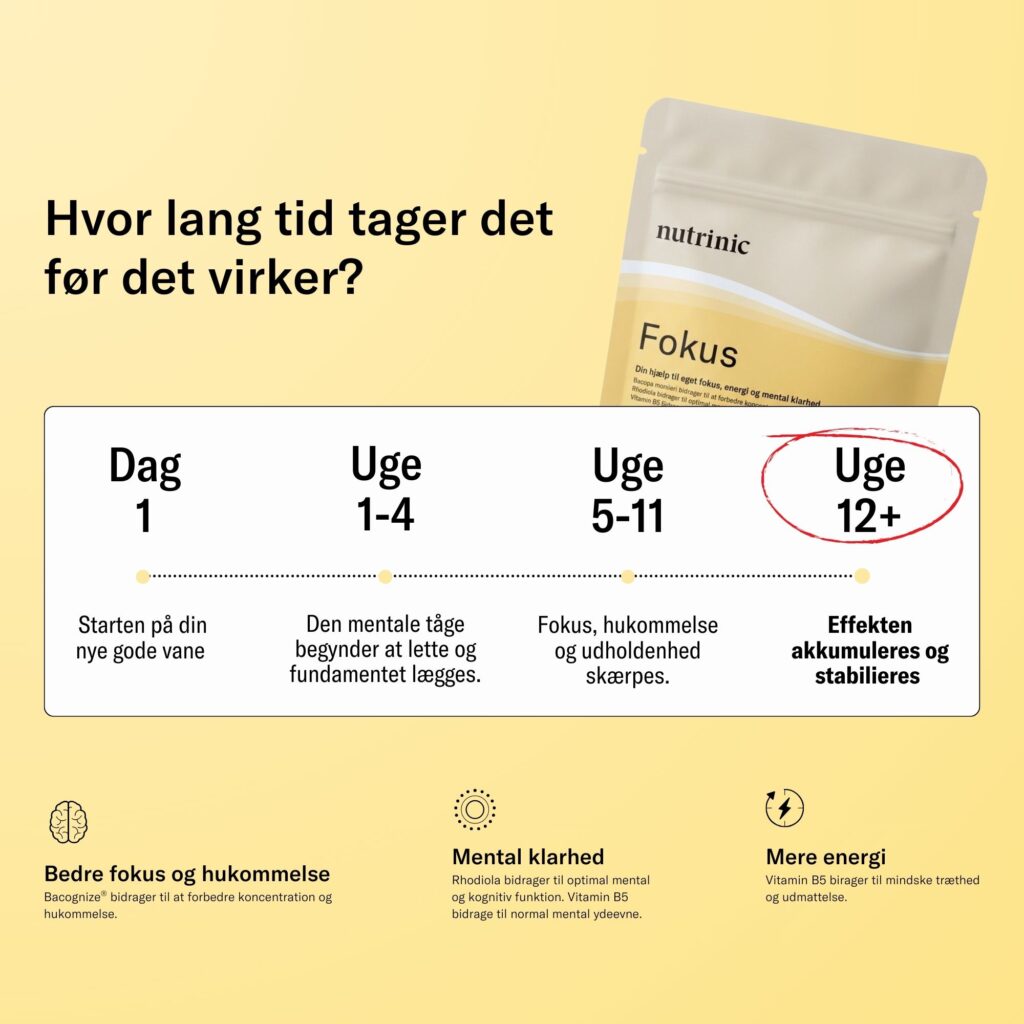 Effekten af et kosttilskud til fokus opbygges over tid, da ingredienserne arbejder på at optimere hjernens funktioner. Her er en generel tidslinje for, hvad du kan forvente: