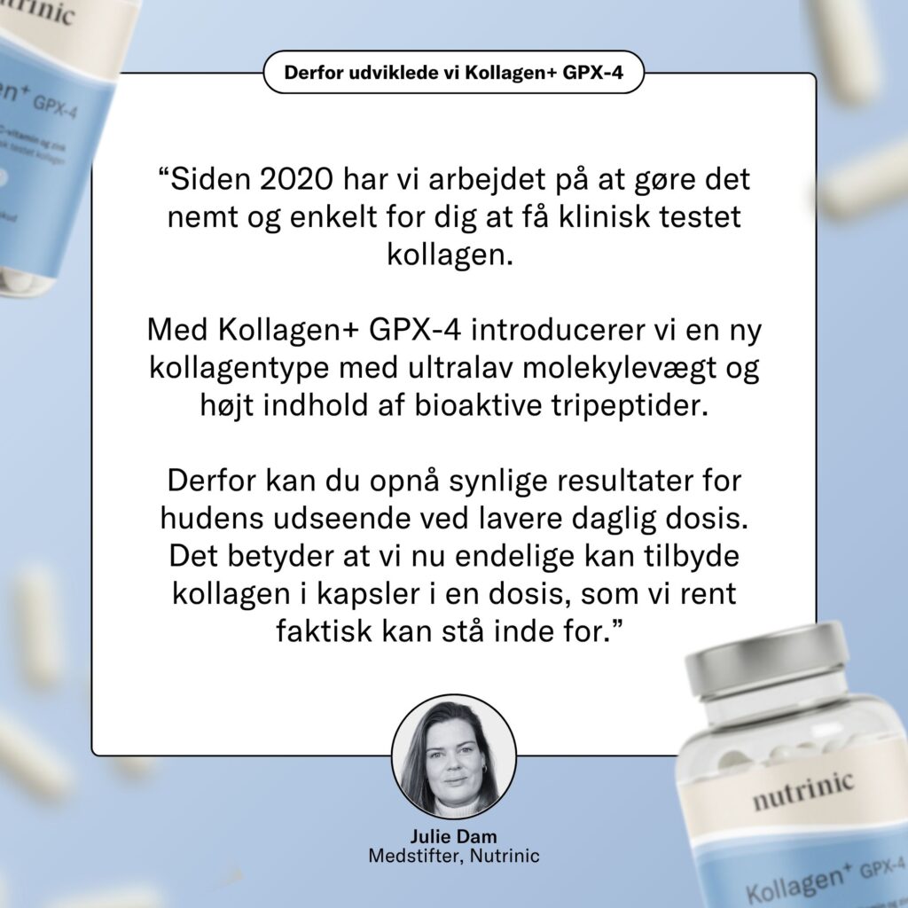 GPX-4-kollagen har ultralav molekylestørrelse og et dokumenteret indhold af bioaktive tripeptider.